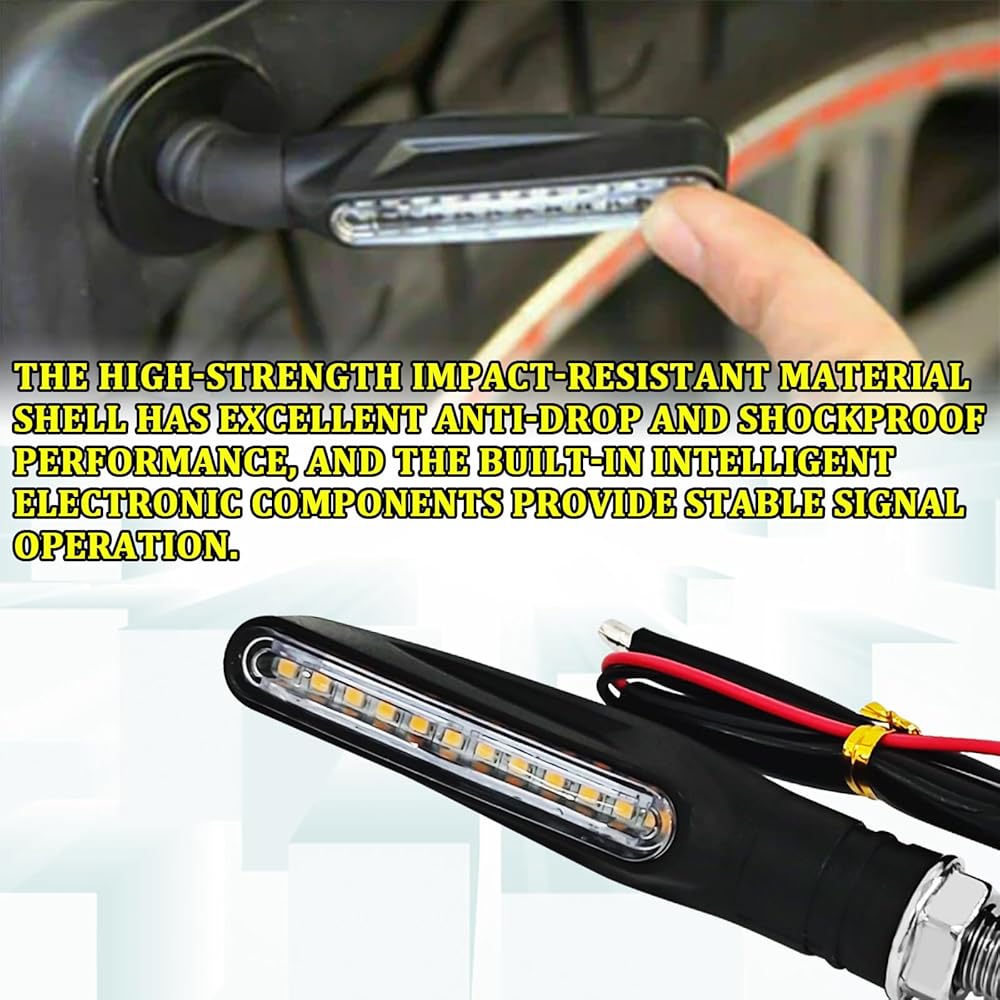 【Premium Material】: This LED motorcycle turn signal light is made of ABS plastic material, which is waterproof and wear-resistant, not easy to damage, and has built-in intelligent electronic components to ensure stable signal operation and long service life