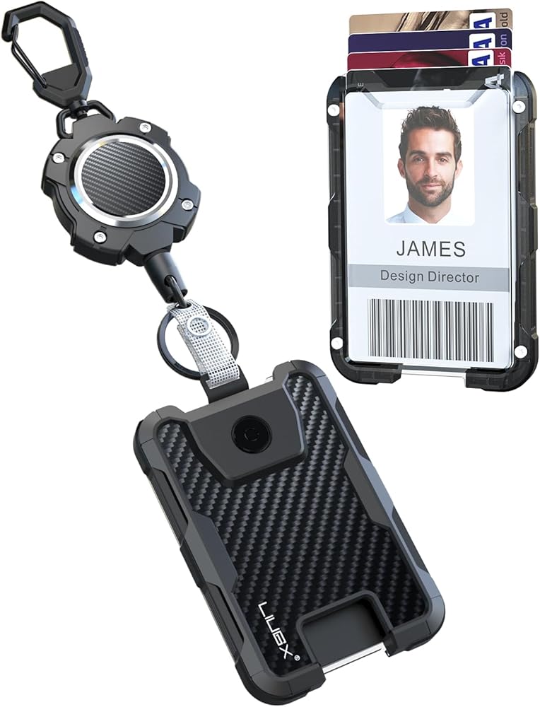 Carbon Fiber Back Cover - The innovative addition of carbon fiber material on the back makes the id badge holder more sturdy and cool. The cool armor frame design and carbon fiber back make the credit card holder both practical and stylish.