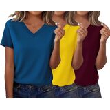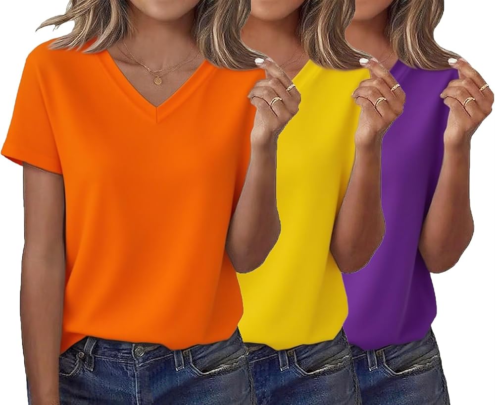 DESIGN FEATURES: Features a flattering V-neckline and short sleeves that create a timeless, versatile silhouette perfect for casual everyday wear