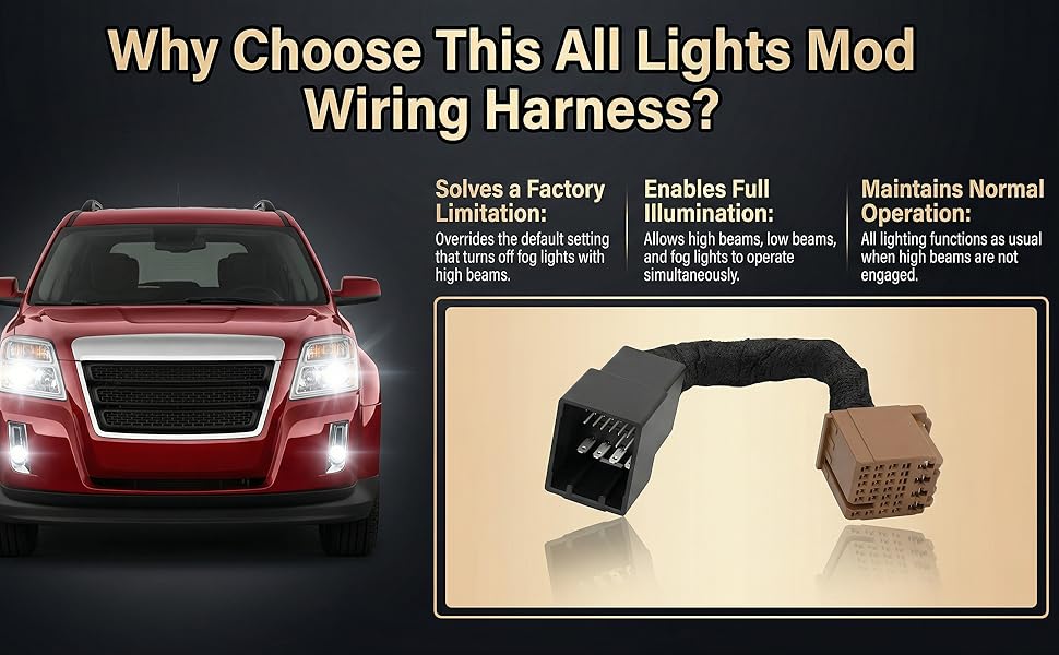 All Lights Mod 6 High Mod Wire Harness Compatible with Chevy GMC Buick Select Models, Plug and Play, Fog Low Beams on with High Beams All The Headlights on Module