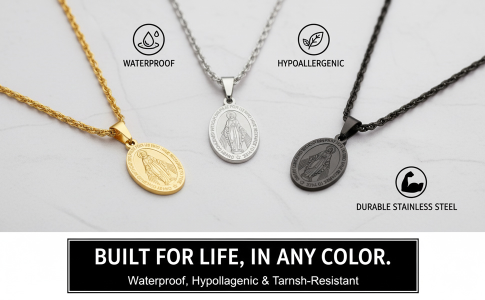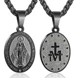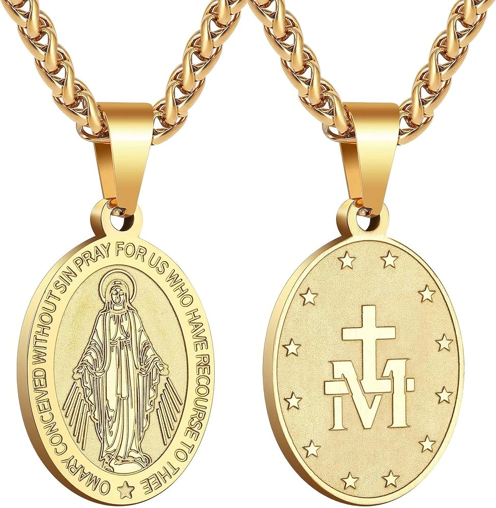 DETAILED DOUBLE-SIDED DESIGN: The front features a classic depiction of the Blessed Mother, encircled by prayer. The reverse displays the Marian Cross and 12 stars, symbols of Christian faith.