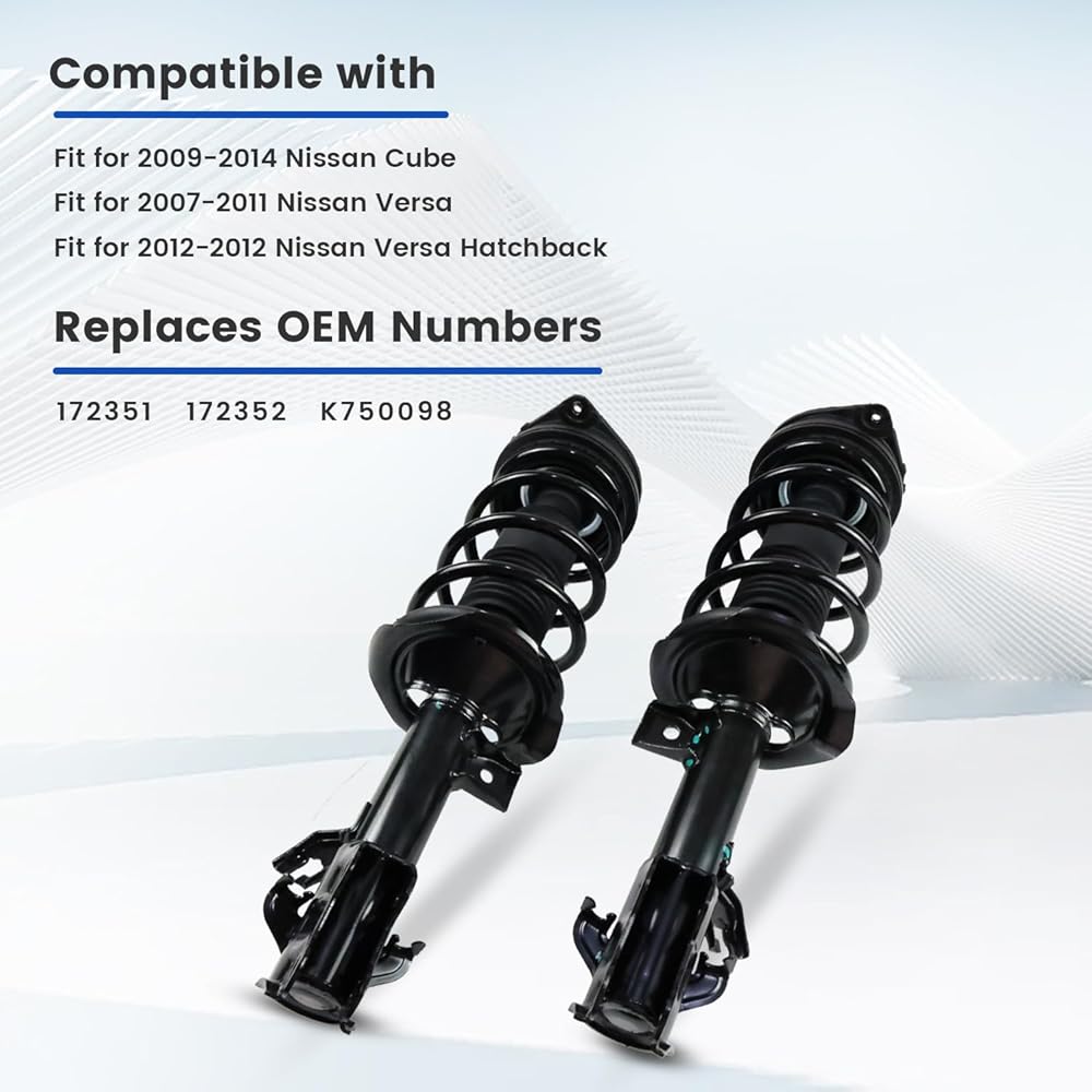 Vehicle Fitment: Shock Absorbers Compatible for 2009 - 2014 Nissan ( Cube ), for 2007 - 2011 Nissan Versa, for 2012 Nissan Versa (ONLY 1.8L S/SL Hatchback)