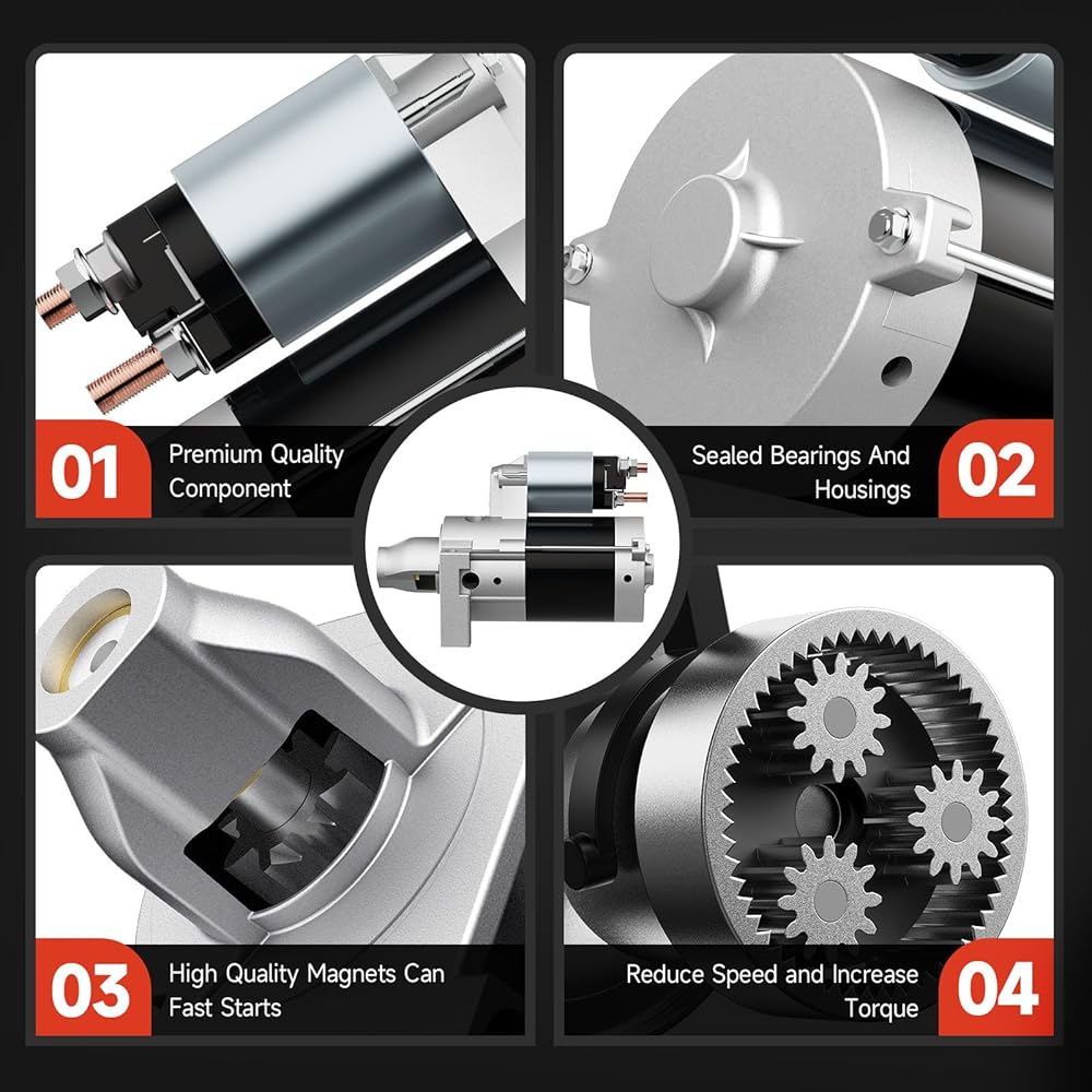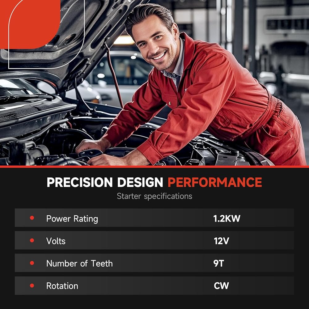 [Reliable Performance] This brand new starter is engineered to meet or exceed OEM specifications. With state-of-the-art manufacturing processes and high-quality materials, this starter promises exceptional durability and reliability. Extensive testing guarantees that this starter can withstand the rigors of daily driving while maintaining peak efficiency. Don't settle for subpar replacements; choose a starter that is built to last and designed specifically for your vehicle's engine specifications.
