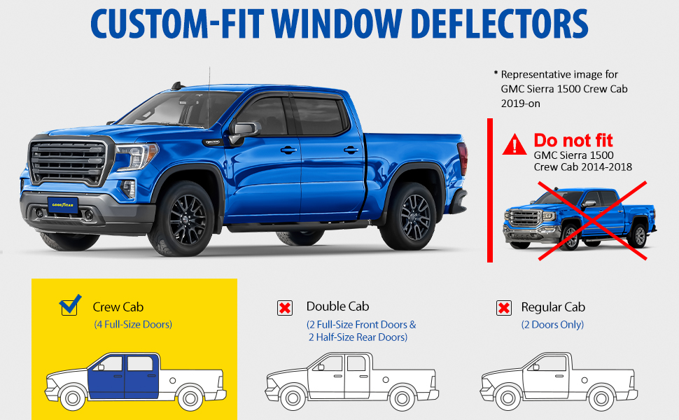 Attention! Vent deflector fits only for GMC Sierra 1500 2019-2026 Crew Cab.