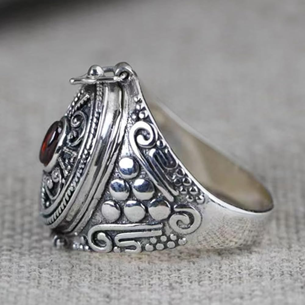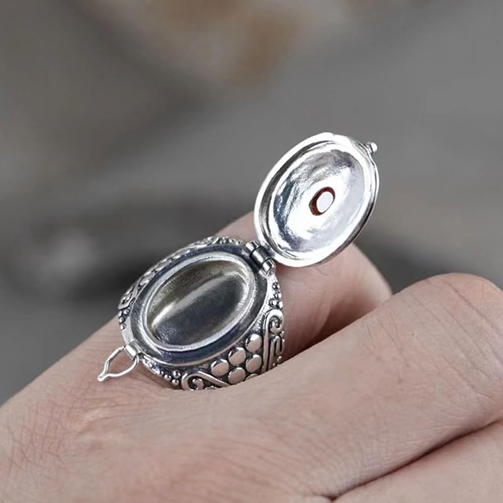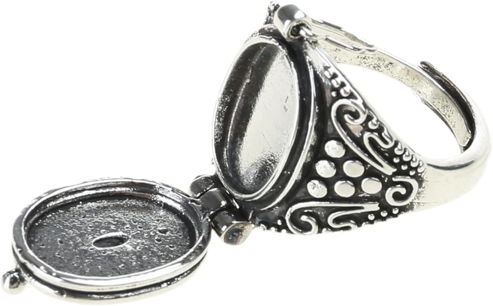 Alloy Gawu Box Rings with Secret Compartment for Jewelry Adjustable Size Openable Rings Ethnic Accessory for Parties