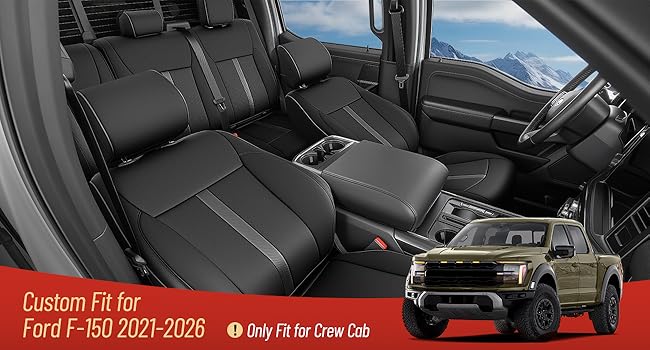 Durable Material: Crafted from top-notch material, these truck seat covers are designed to endure and resist scratches;Designed for Ford F150 2015 2016 2017 2018 2019 2020 2021 2022 2023 2024 2025 SuperCrew/CrewCab(XL,XLT) trucks, they offer long-lasting durability, ensuring your truck's interior remains pristine