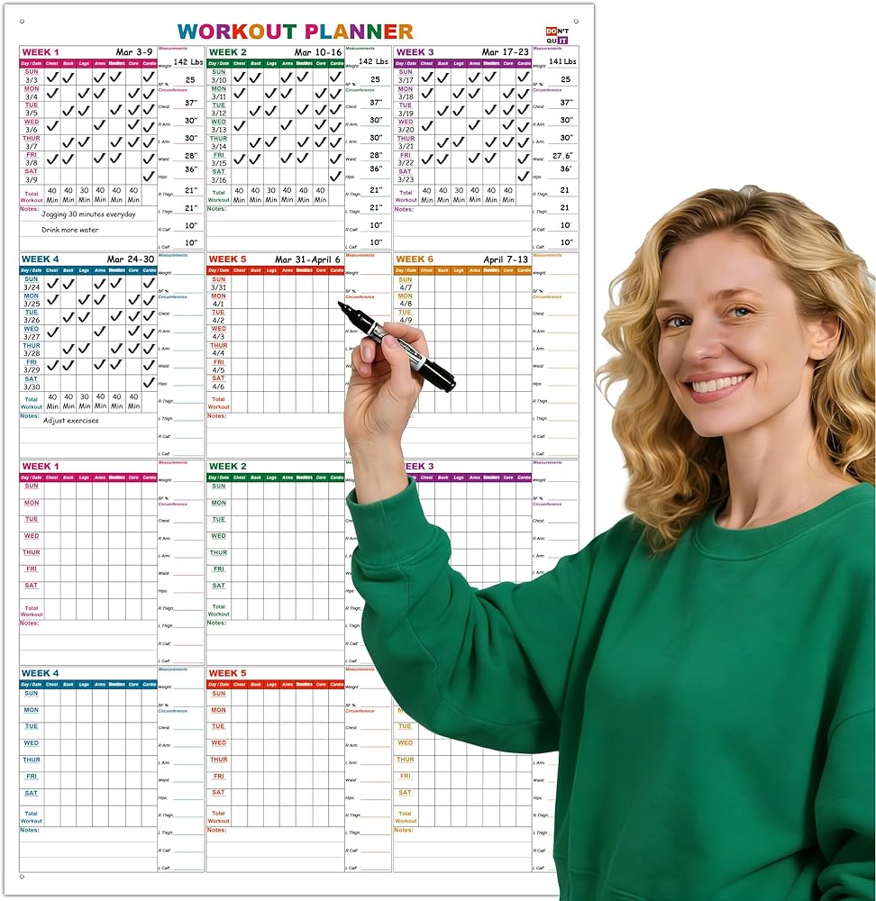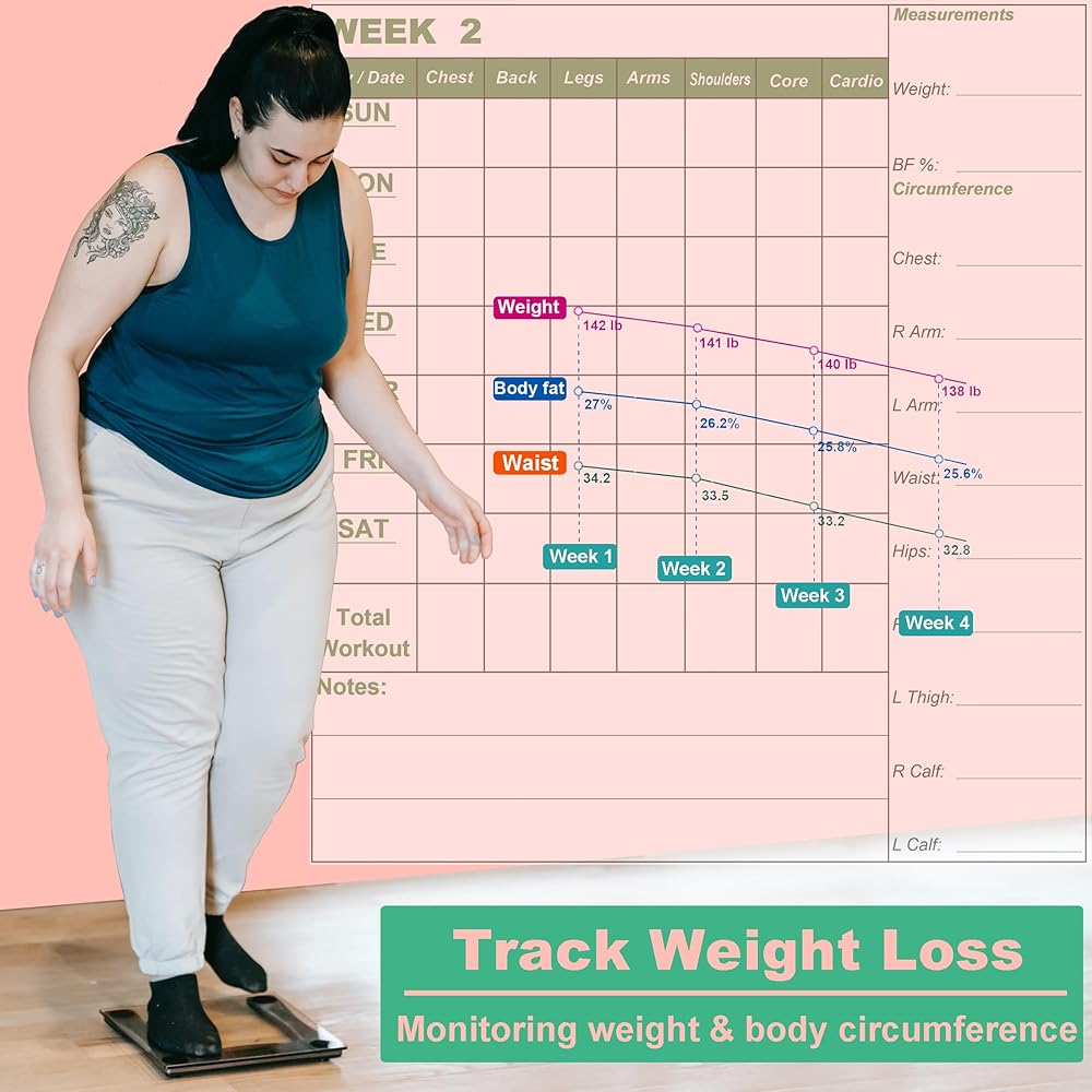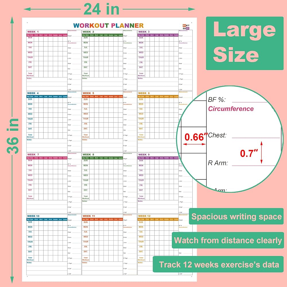 Large Dry Erase Workout Calendar For Wall, 24 X 36 Inch Reusable 12 Week Weight Loss Tracker Chart, Lightweight Gym Whiteboard Poster For Tracking Exercise, Body's Measurement & Circumference