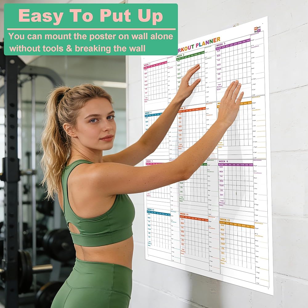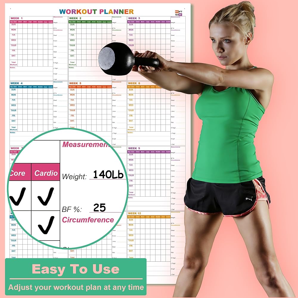 EASY TO FOLLOW WITH LARGE SIZE: This workout calendar measures 36x24 inch with ample space to writing, you can watch your workout focus and bodybuilding progress easily from across the room