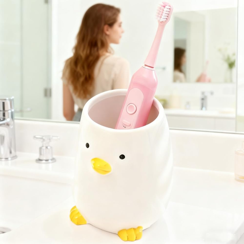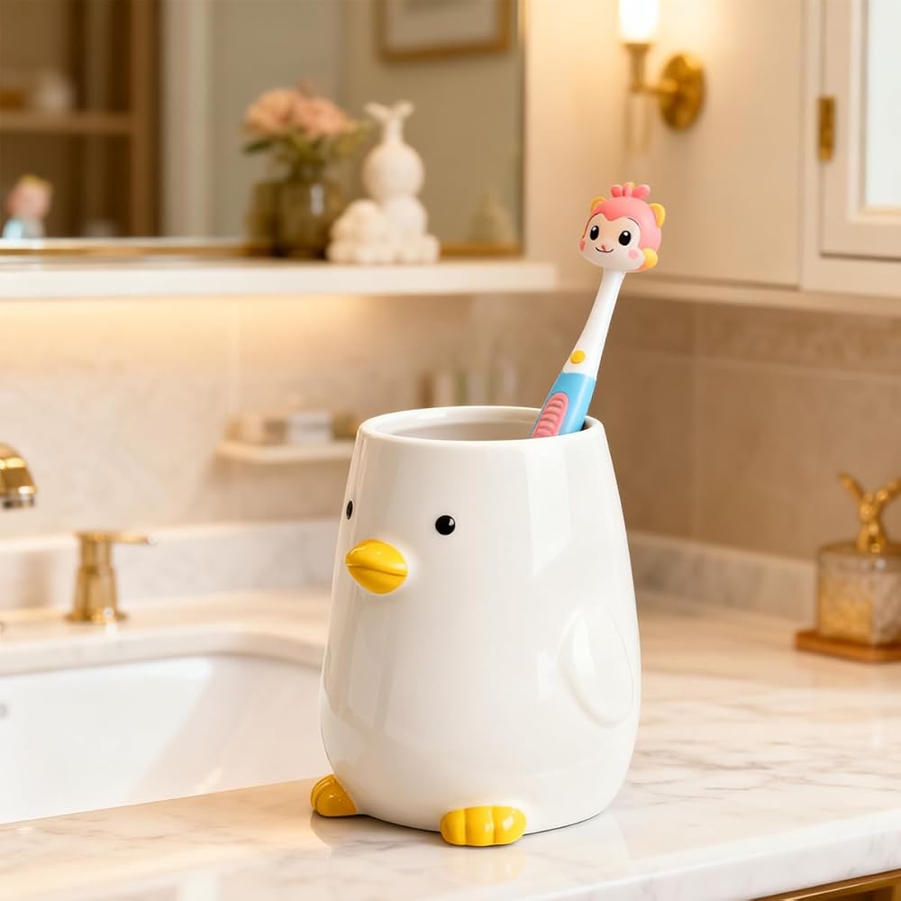 【Cute Duck Animal Design】Brighten your home! Our ceramic toothbrush cup features a charming, cute animal face that adds a playful and joyful vibe to your home.