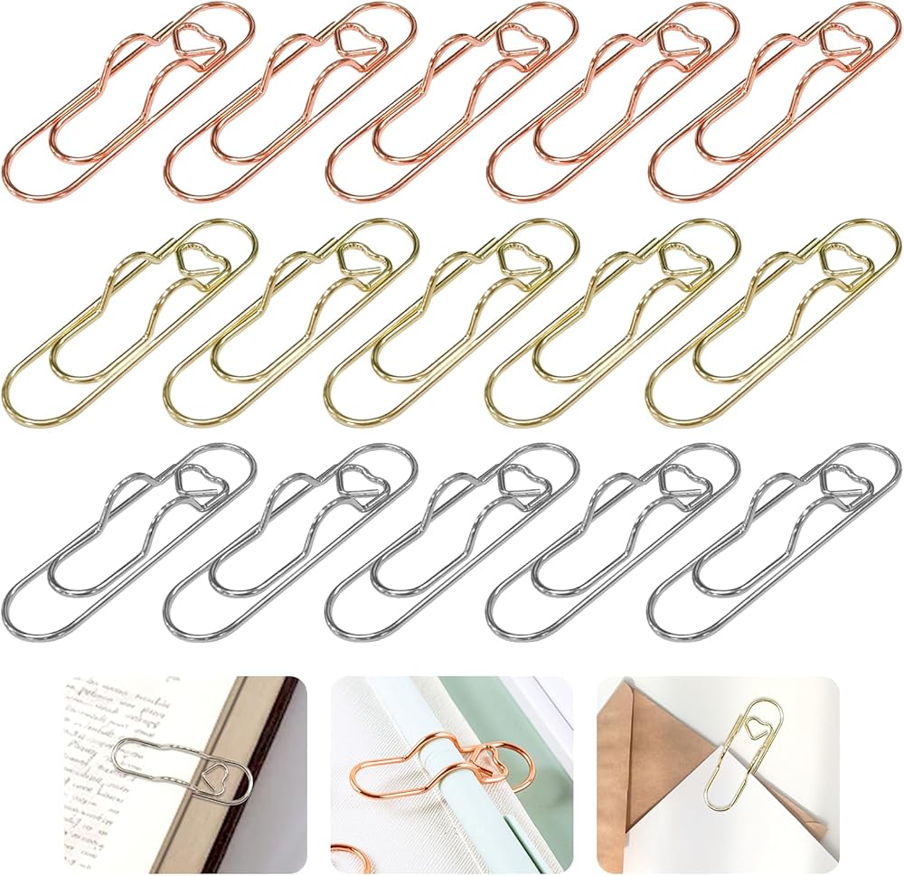 【15-Pack in 3 Elegant Colors】Includes 15 metal pen holder clips in classic gold, silver, and rose gold (5 of each), perfect for matching notebooks, planners, journals, and office supplies.