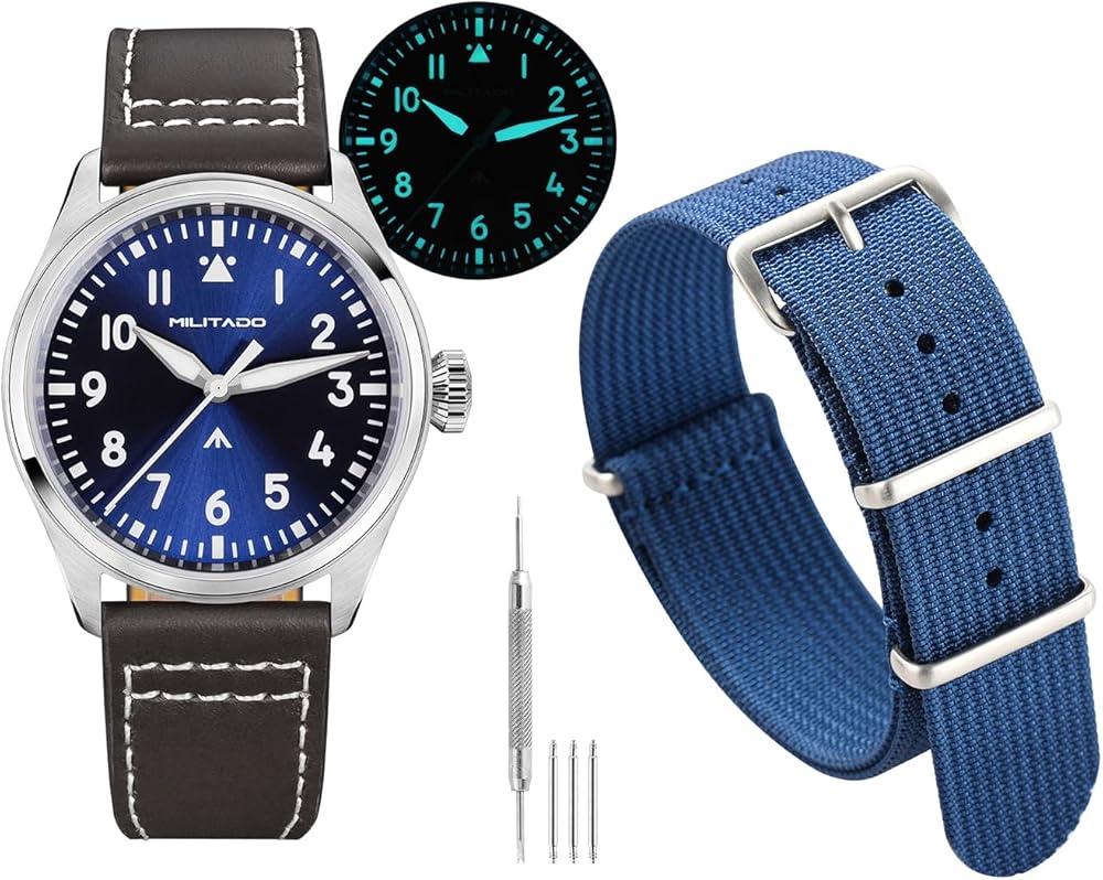 TACTICAL FROG MILITADO ML21 Quartz Watch for Men, VH31 Sweep Movement, Sapphire Crystal, 100M Water Resistant, Includes Extra Watch Strap 20mm and Adjustment Tool