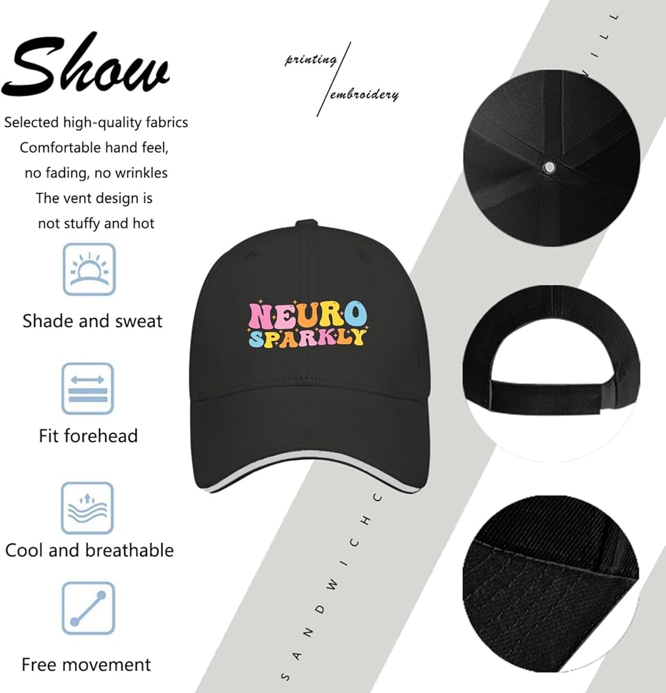 Neuro Sparkly caps Women's Hats & caps Mens Sun hat Gifts for Dad Sun Hats AllBlack