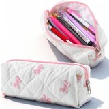 Coquette Bow Design - Our preppy pencil case features a charming bow print and elegant zipper pendants, adding a touch of sophistication to your stationery collection while keeping your essentials neatly organized