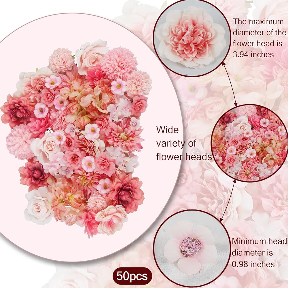 50 Pcs Pink Artificial Flower Heads