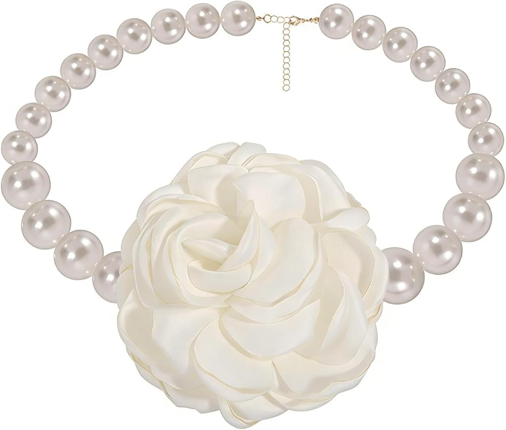 [Pearl Choker Necklaces]Bring on the charm with these pearl choker necklaces for women, blending delicate white pearls with cute fabric flowers for a whimsical, retro-inspired vibe. The Y2K big petal design adds a bold, playful twist, while the kawaii preppy aesthetic makes it great for layering or wearing solo. Whether you're into dainty pearl beaded chains or eye-catching floral collars, this necklace mixes grace and fun that pop with any outfit