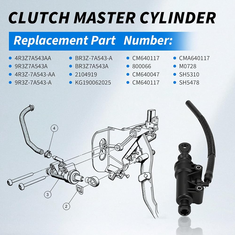 【Compatible with】Clutch Master Cylinder fits for 2012-2013 Mustang Boss 302 GAS 6-Speed Manual Transmission, 2008-2009 Mustang Bullitt 5-Speed Manual Transmission, 2011-2014 Mustang GT GAS 6-Speed Manual Transmission, 2007-2008 Mustang Compatible With Shelby GT 5-Speed Manual Transmission, 2005-2010 Mustang (submodel: Base, GT) 5-Speed Manual Transmission