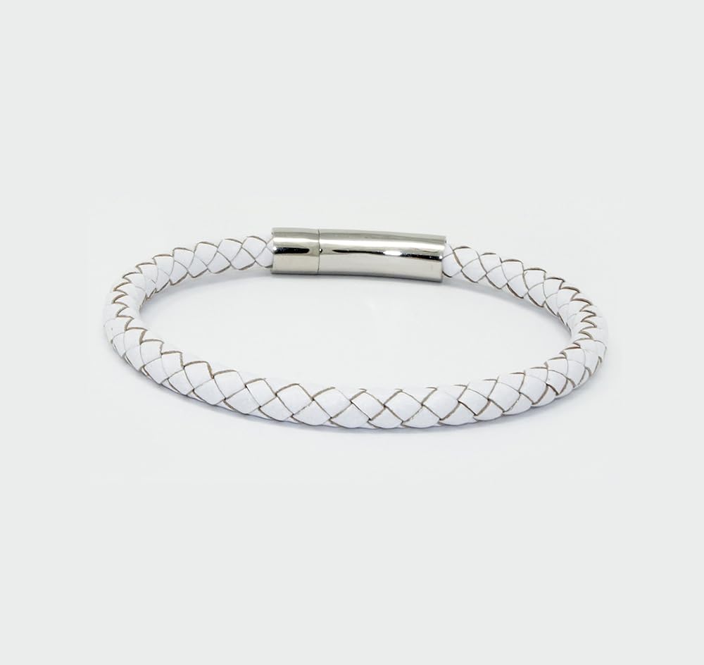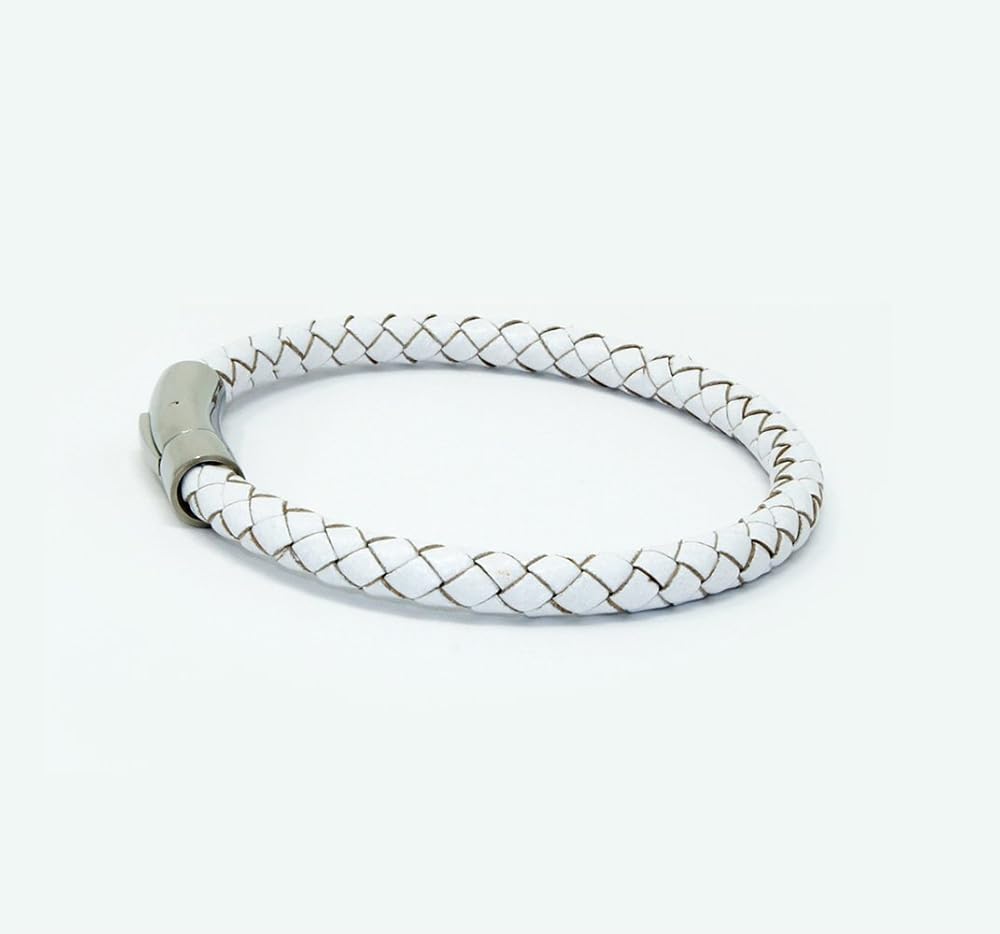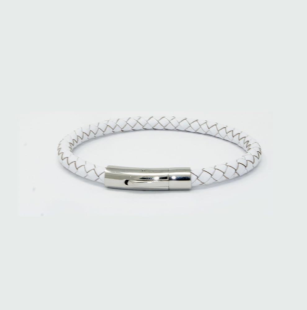LZD Men Unisex Genuine Leather Braided 6mm Stainless Steel Clasp Bracelet White 7" 8" 9" Inches Clasp4