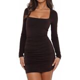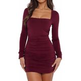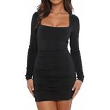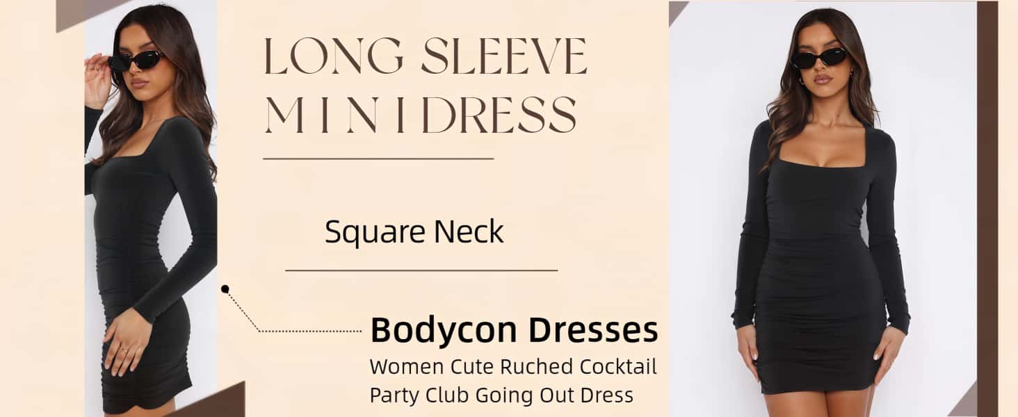 MACTH:Casual Square Neck Long Sleeve Solid Ruched Bodycon Mini Dress can be easily dressed up with heels and jewelry for a eye-catching look,The maxi dress for women with sandals, heels, boots, cardigans, jackets, sunglasses, necklaces, clutch bags, shoulder bags