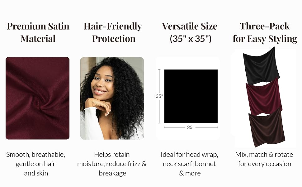 Three Pack for Versatile Styling: Includes three 35-inch square scarves, perfect for daily wear or creating different stylish looks
