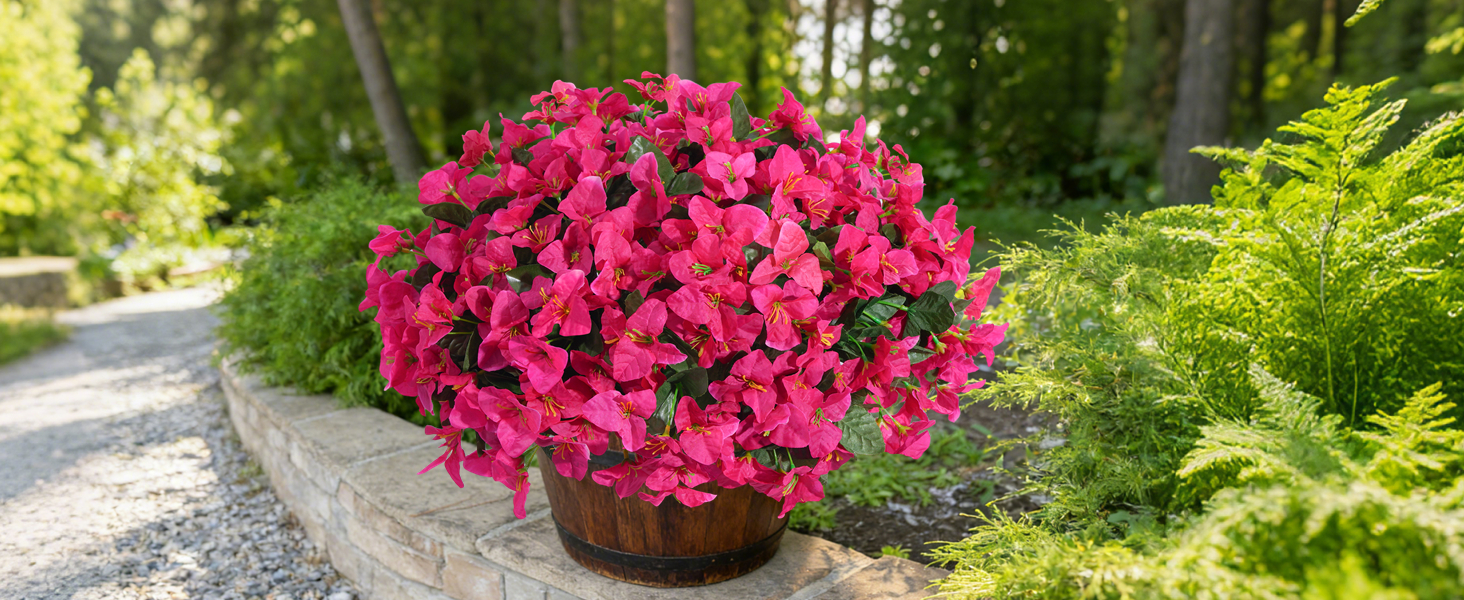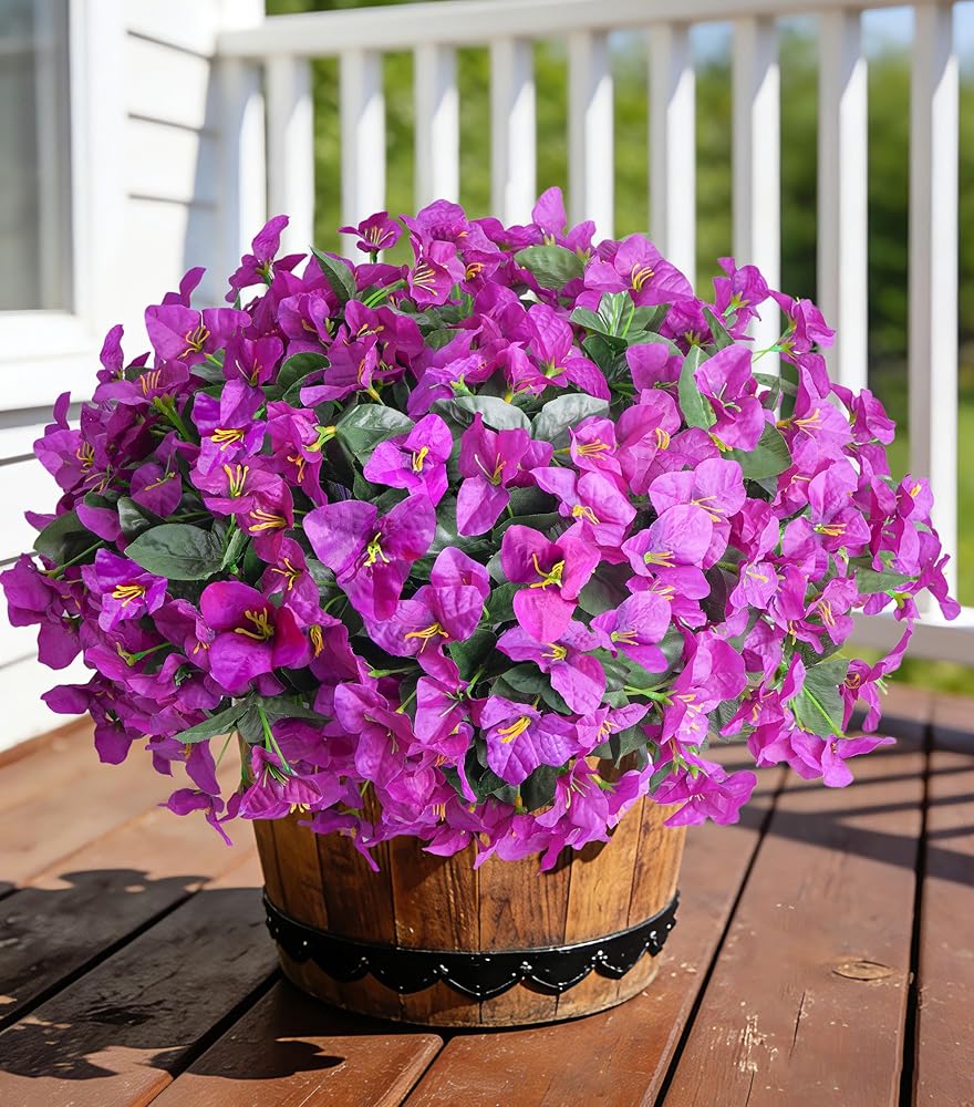✅ 4 Bundles Fake Outdoor Flowers: Comes with 4 bundles of artificial bougainvillea flowers (Pot Not Include), enabling you to create diverse floral arrangements freely. Each outdoor artificial flowers is adorned with bright green leaves and blooms lushly. These artificial flowers for outdoors can effortlessly bring a touch of natural beauty and infuse your living space with long-lasting vitality.