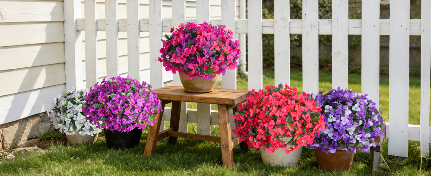 ✅ Spring Flowers Artificial for Decorations: These UV resistant artificial outdoor flowers are perfect for porch, patio, garden, yard, front door, balcony, window box, planters, hanging basket, flowerbed, outside, indoor home decoration, letting you enjoy blooming beauty all season. The fake flowers are also suitable for many occasions such as wedding, parties, baby shows, festivals or other special days.