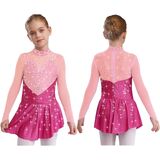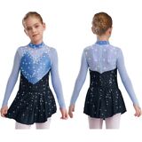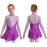 This stunning figure skating dress features shiny rhinestones, perfect for competitions and performances, ensuring your little one shines on stage