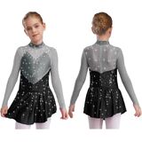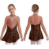 Introducing our sparkling Kids Girls Figure Skating Dance Dresses, designed to dazzle with their shiny rhinestones that catch the light beautifully.