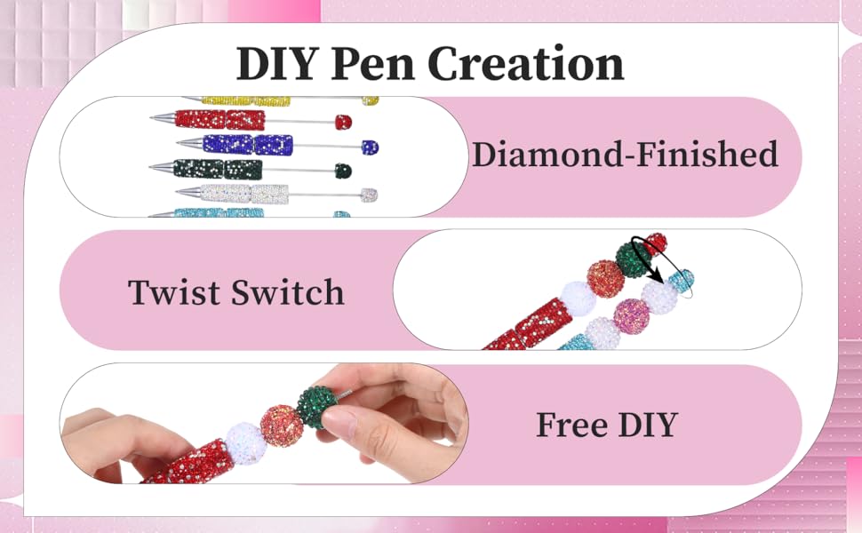 Sparkling DIY Creativity: These bead pens feature full-rhinestone bodies, ready for DIY with focal beads for pens (Bead does not contain). Perfect for crafting bling pens or diy pens making kit beads projects—ideal for teens, crafters, or gift-makers