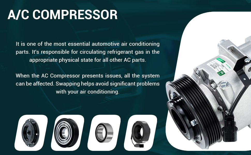 • ✅ FUNCTION: A/C compressors are the heart of automotive air conditioning refrigeration systems and with a heavy responsibility to compress and transport refrigerant vapors throughout the automobile's A/C system.