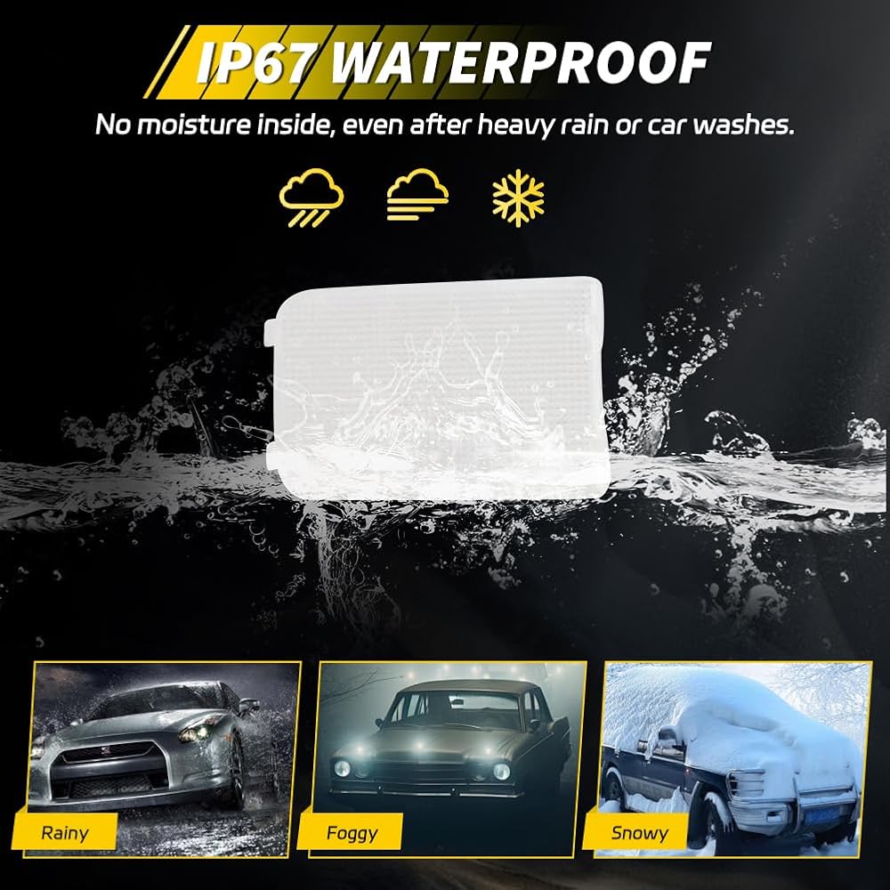 [IP67 Waterproof & Stylish Design] The IP67 waterproof housings come with a reliable seal, providing good lighting in all weather conditions. Our precise and fashionable design increases the visibility and adds an element of style to your vehicle appearance, enhancing your overall driving experience.