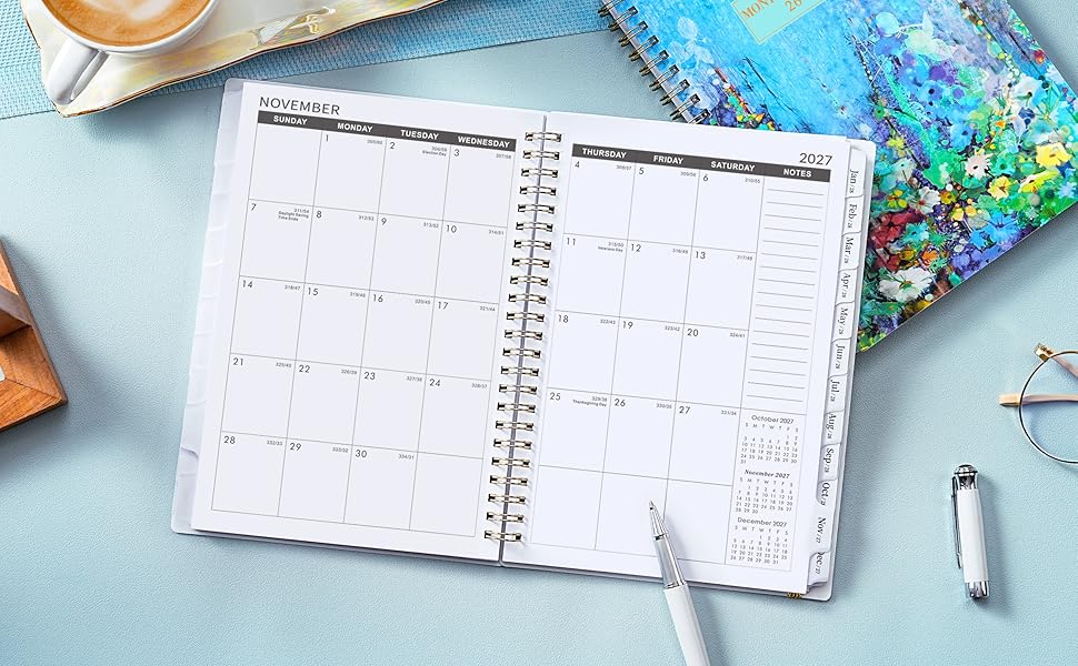 💦 MONTHLY OVERVIEW - Unruled daily blocks (1.3" x 1.5" ) for open scheduling and notes sections for your spontaneous and important items. There are also past, present and future monthly references in the monthly pages. Besides, highlighted holidays and Julian date will help you better organize your life.
