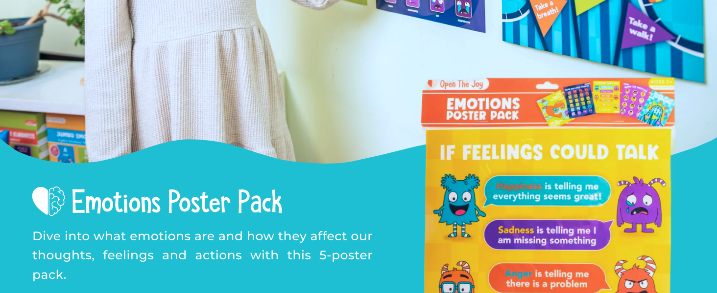 Open The Joy Emotions Poster Pack – Feelings Chart & Emotion Recognition Visuals for Kids | Social Emotional Learning (SEL) Posters for Preschool, Home & Classroom | Ages 2+