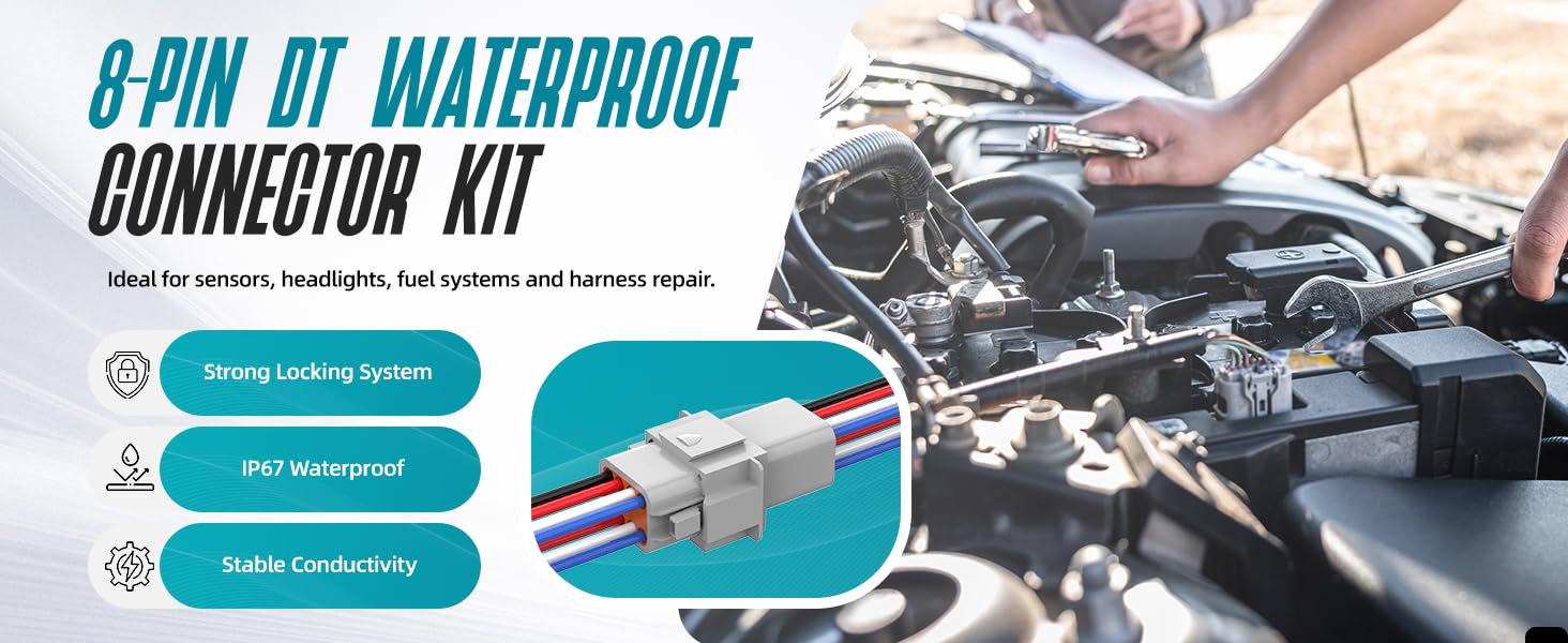 【Wide Application for Vehicles & Marine Projects】Ideal for automotive repairs, upgrades, or DIY wiring, this dt connector kit works well for cars, trucks, motorcycles, boats and other equipment requiring reliable automotive connectors in demanding environments.