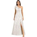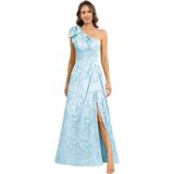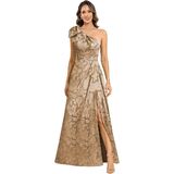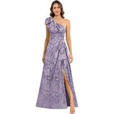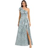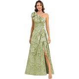 Design:One Shoulder Mother of The Bride Dresses for Women,Floral Chiffon,High End,A Line,with Slit,with Bow,Pleated,Ruched,Floor Length,Empire Waist,Elegant,Classy,Zipper,Built-in-Bra. You will receive many compliments on this dress.