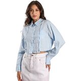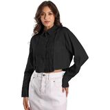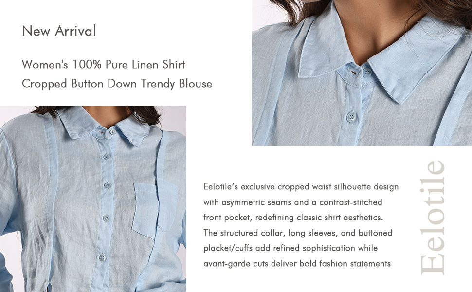 Features: Eelotile's exclusive cropped waist silhouette design with asymmetric seams and a contrast-stitched front pocket, redefining classic shirt aesthetics. The structured collar, long sleeves, and buttoned placket/cuffs add refined sophistication while avant-garde cuts deliver bold fashion statements