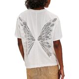 Feature: Sheer butterfly short sleeve tee shirts, sheer butterfly embroidered t shirt, crewneck, back see through, mesh butterfly cutout at back, drop shoulder, crewneck oversized tee tops, cute embroidery Y2k loose tee.