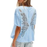 Style: Butterfly embroidered T shirt, cutout back embroidery shirts, loose-fitting design with drop-shoulder sleeves, styled well with jeans, shorts, skirts, leggings, sweatpants, sneakers or sandals.
