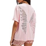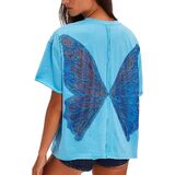 Material: Polyester blend. Short sleeve butterfly tee, summer oversized graphic t shirts, skin friendly, lightweight, breathable, super soft and comfortable to wear.