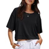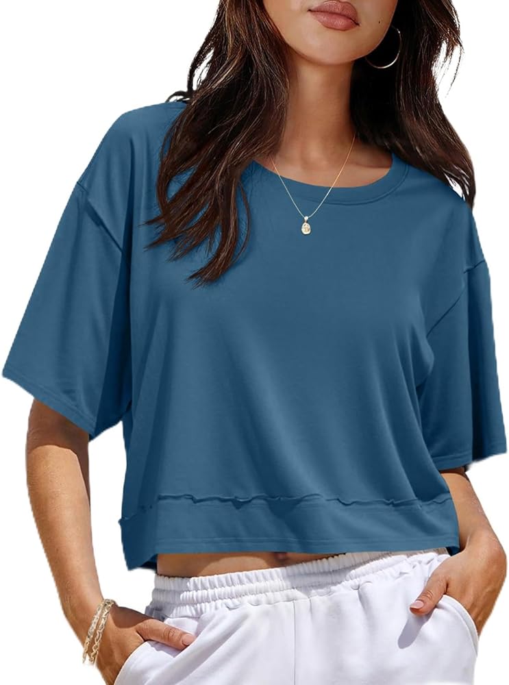 【Classic Crew Neckline】: Designed with a timeless crew neckline and short sleeves, this top brings a clean, casual look that flatters all body types. The relaxed fit with a flowy hemline provides extra comfort and adds effortless style.