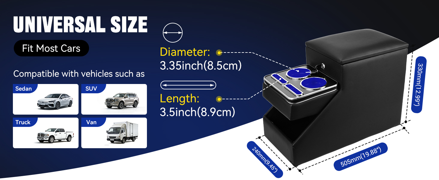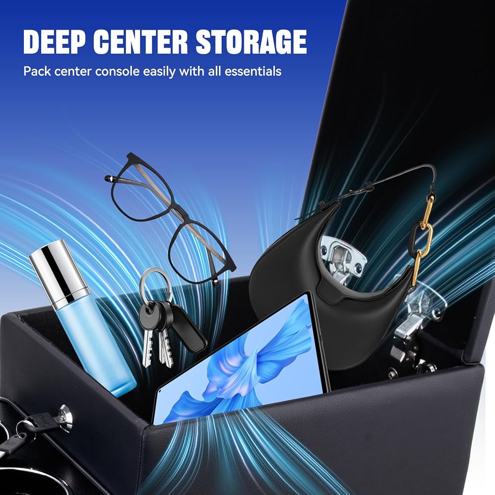 【Space-Optimized Design】: With overall dimensions of 49.9cm (L) × 25.1cm (W) × 32.9cm (H), it provides universal compatibility. The secure storage compartment (31.0cm L × 21.9cm W) can accommodate a 10-inch tablet. The 13.39-inch flip-up armrest height is ergonomically tuned to ensure driving comfort, making it an ideal car console organizer for various automotive center consoles, including a robust center console for truck applications.