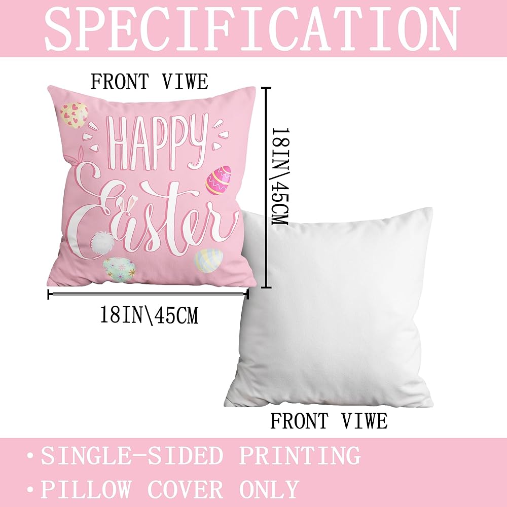 EASTER PILLOW COVERS - Size: 18x18 inch ( 45x45 cm ), Hidden zipper is designed on this decorative EASTER pillows home decor. Easy to put your pillow insert on/ off, be applied for home decor on easter day and holidays. ONLY PILLOW COVERS, INSERTS ARE NOT INCLUDED. SINGLE SIDED PRINTING.