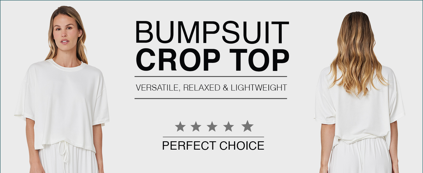 We Recommend You Purchase Your Pre-Pregnancy Size. Luxurious Comfort: Our Cloud Crop Tee is made of signature buttery soft Bumpsuit fabric, providing unmatched comfort for lounging or everyday wear during pregnancy and beyond, ideal for loose crop tops for women.