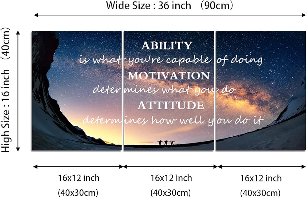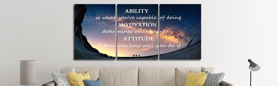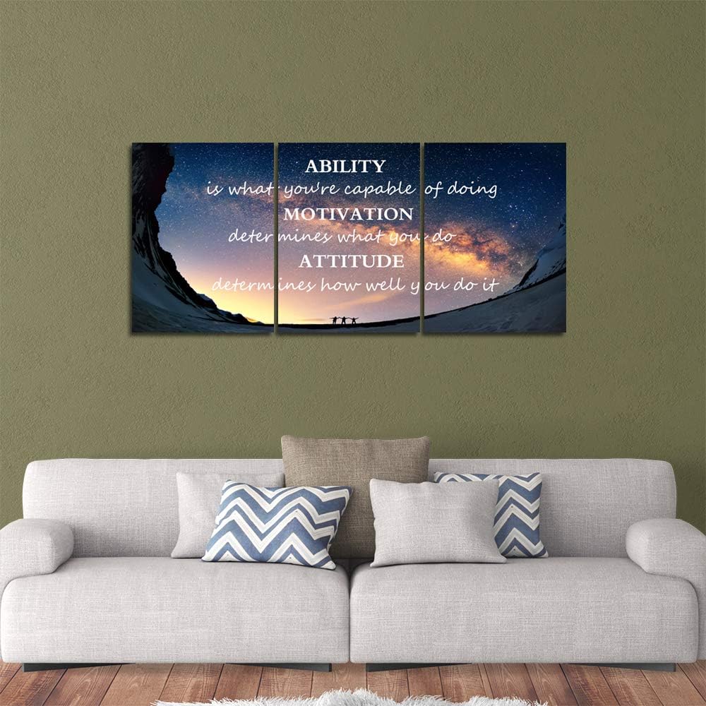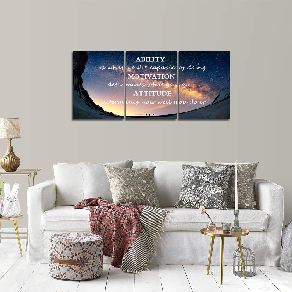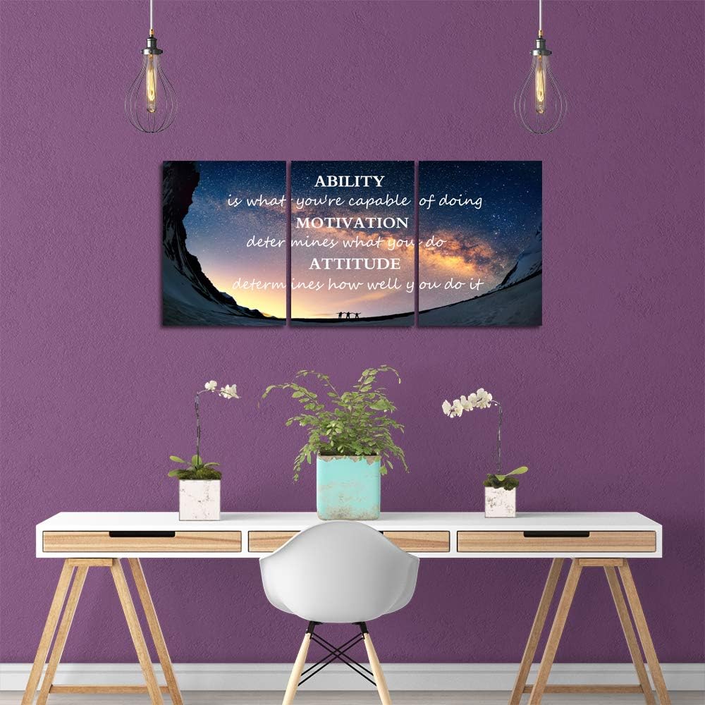 Motivational Quotes Canvas Wall Art Inspirational Ability Motivation Attitude Saying Words Posters Prints Entrepreneur Quote Home Office Bedroom Decor 3 Panels Ready to Hang - 36" W x 16" H