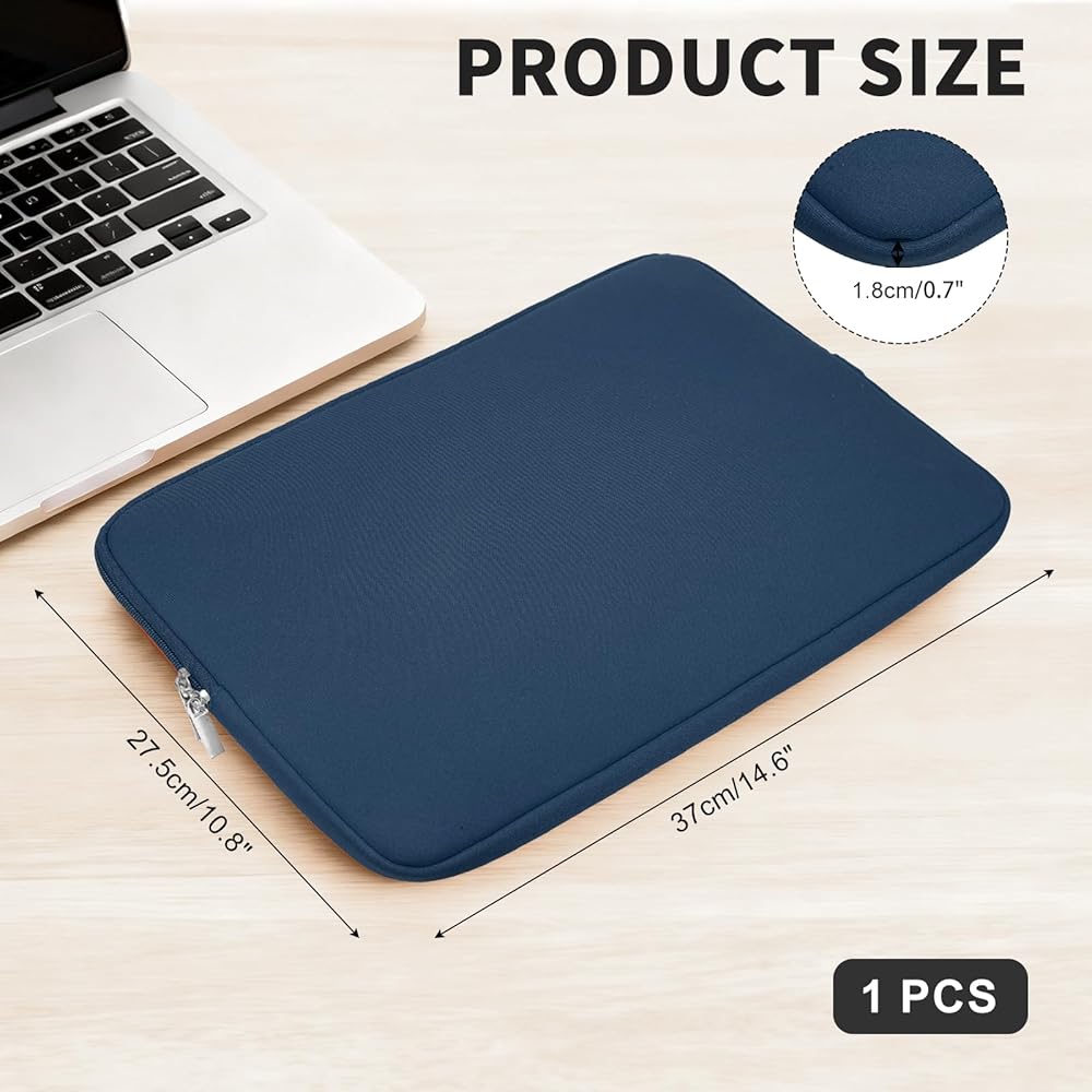 [WHAT IT IS]: Size: 37x27.5x1.8 cm/ 14.6x10.8x0.7 inch. (L*W*H); Color: Dark Blue. This 14-inch laptop sleeve has ample space to store your device while maintaining a lightweight design so you never feel heavy.