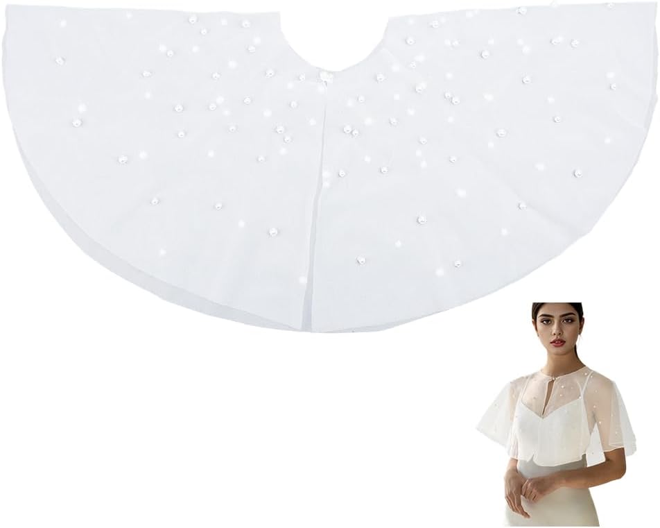 Step into your wedding or formal party like a vision of grace and sophistication. This shawl cape is not just an accessory; it's a statement of elegance. Imagine walking down the aisle with the soft sheen of pearls catching the light, or making an entrance at a formal event, turning heads with your refined style. Whether you're a bride wanting to enhance your wedding ceremony's grandeur or a woman attending a posh party, this piece is designed to make you feel like a million one