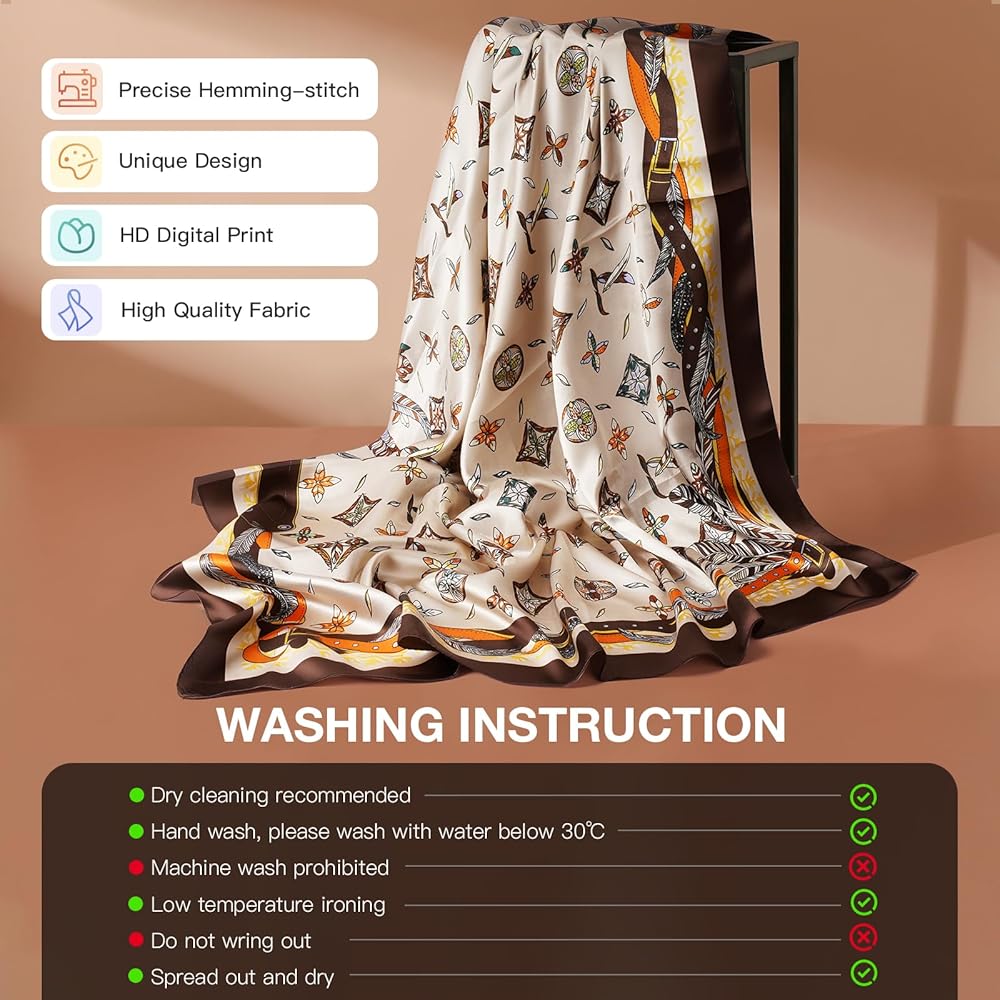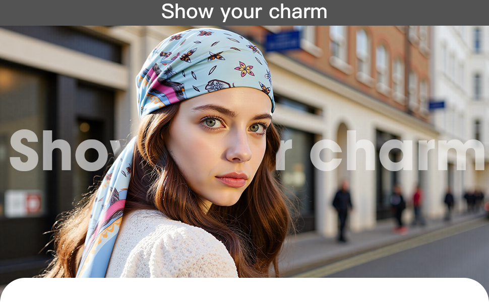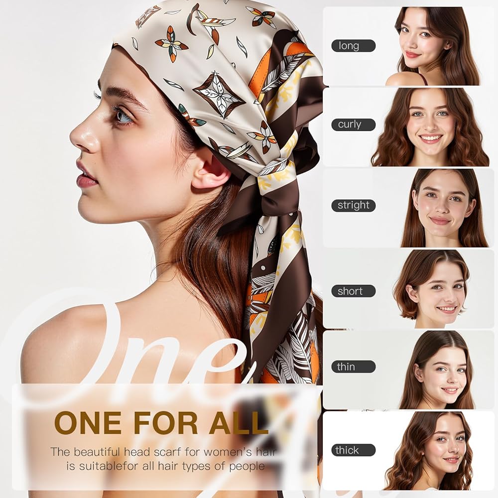 Large Size: 35 x 35 inches/90cm x 90cm square headscarf. Smooth and shiny. It is large enough as head scarf for sleeping, and headscarf during the day.The lightweight scarf can make a great decoration for your outfit.