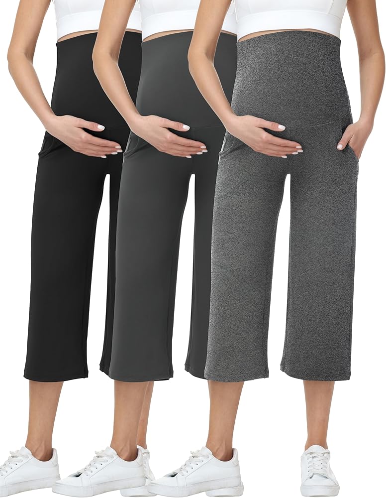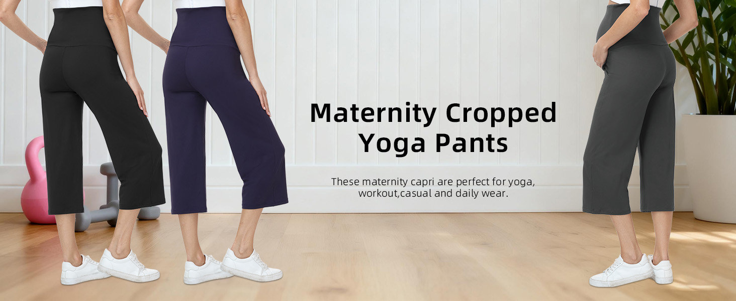 Material: These wide leg maternity capris are crafted from 88% Polyester, 12% Spandex. Soft, stretchy, and breathable. They comfortably adapts to your growing bump while offering flexibility for movement.