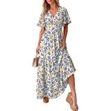 【Fit Type 】 - Regular. This v neck flowy dress is soft and breathable, providing great comfort when worn.This dress of romantic style pairs well with sandals, wedges or sneakers, suitable for daily leisure, dating, beach, vacation or garden gatherings.