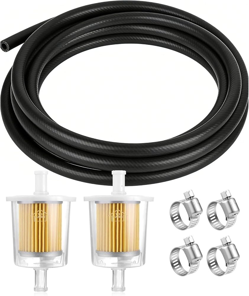 Kit contents: 2-metre/6-foot fuel line, 2 x 3/8-inch inline fuel filter with magnets, 4 x adjustable mini clamps (3/8”). This kit includes all necessary accessories, saving you time and eliminating the hassle of sourcing individual components.
