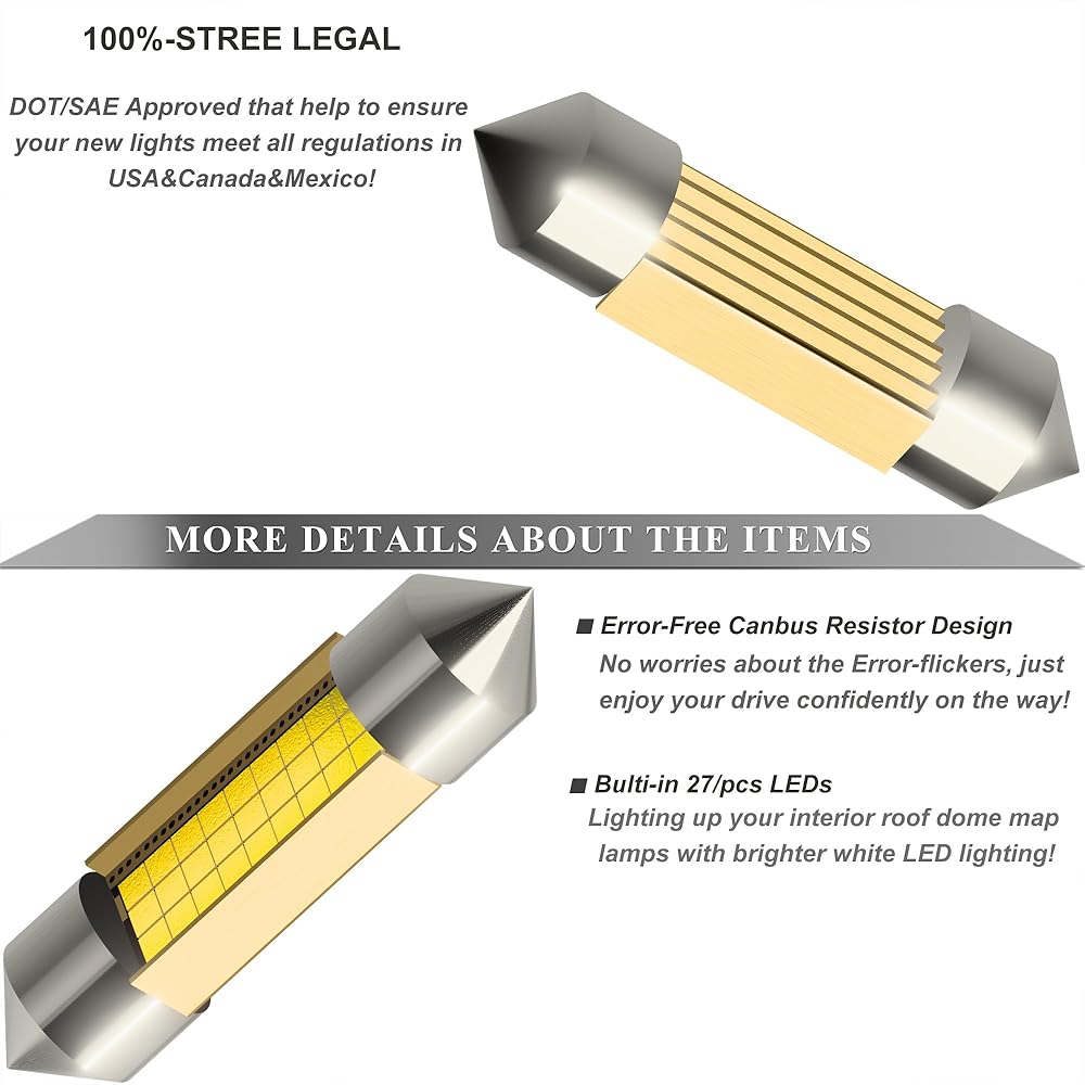 2. These white LED interior light bulbs for ProMaster 1500 2500 3500 is very simple and easy to install, which is non-polarity design, just plug and play. They will be lighting up when you in the cars, giving your truck/pickup/van a clearer interior visiable to see or find anything in the dark.